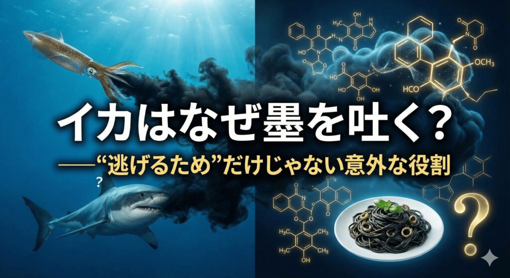 イカの墨には、私たちが想像する以上に巧妙な戦略が隠されています。単なる煙幕ではなく、化学兵器であり、囮(おとり)であり、時には攻撃武器にもなる——まるで忍者の道具のような多機能ぶりなのです。